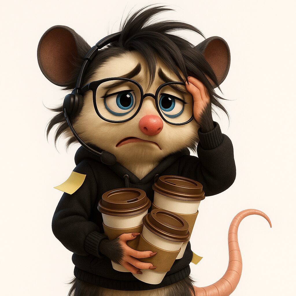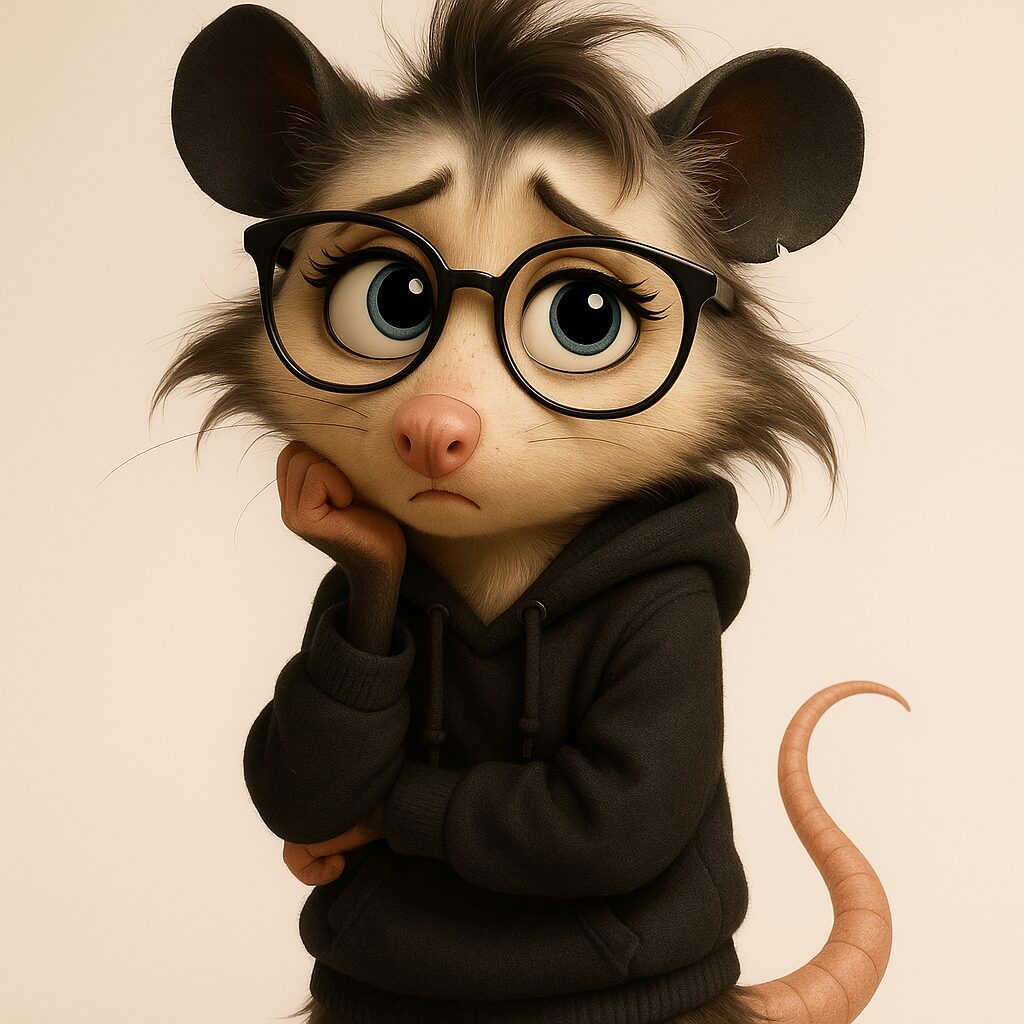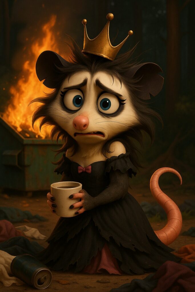 Welcome to the dominion of the Awkward Opossum: ruler of chaos, conqueror of snack drawers, and sworn defender of the overpriced latte. This is not a kingdom built on dignity.